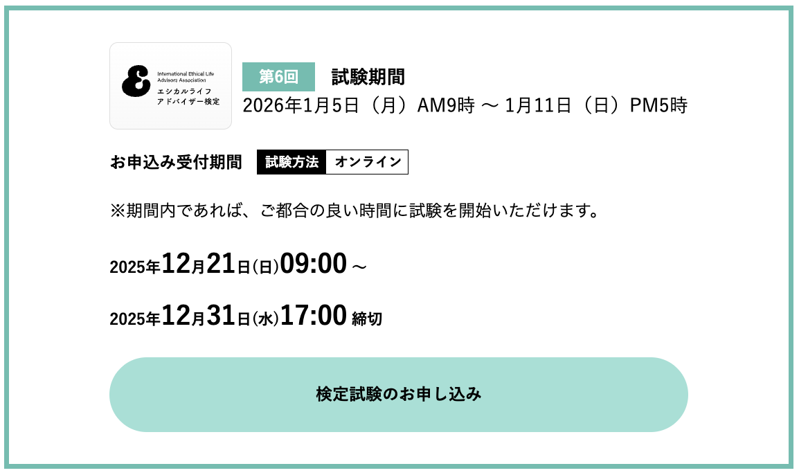 エシカルライフアドバイザー検定は、インターネットで受験ができる検定試験です。